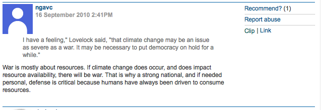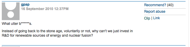 Today’s Guardian Comment is Free section has an interesting piece by Micah White, contributing editor at Adbusters, discussing the environmental movements failure to find agreement on a solution to Global Warming. This shouldn’t really be a controversial topic for Guardian readers, who typically pride themselves on cycling to work and holidaying by train, they also apparently look something like this: