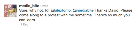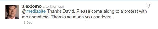 Journalist Alex Thomson responded via twitter to our analysis of Channel 4’s live blogging of the recent protests against substantial university fee hikes, ‘‘Embedded’ with the police, Channel 4 and the UK student protests‘ (cross-posted at the Irish Left Review):